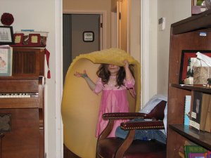 Here is Bella gathering supplies for the fort building.