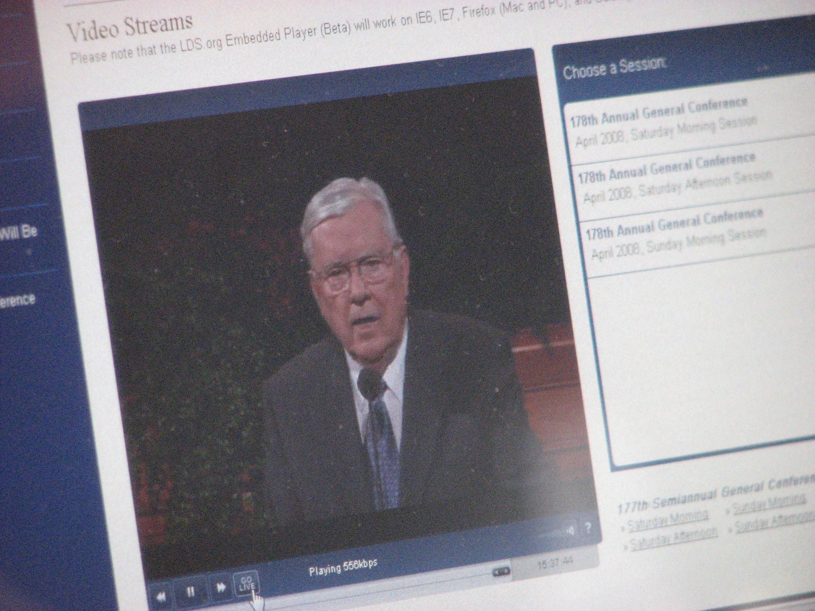 Of course, the Conference doesn’t hail from TN, but it’s broadcasted throughout the world from Church Headquarters in Salt Lake City, UT. This is what our computer looks like while we are watching and listening online directly from the comfort of our own home.